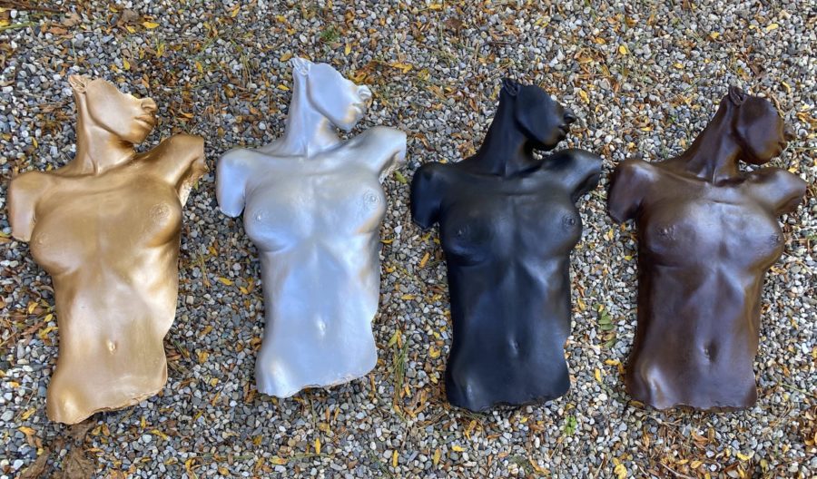 This Robert Lee Morris Body Cast is a resin casting of a life-cast woman, that was used as the iconic display in ARTWEAR Gallery as well as Robert Lee Morris stores. It is available in matte white, Â black, dark brown, gold, or silver. Please specify which color you want. Each body cast has a wire or loop embedded in the back for easy hanging on the wall.