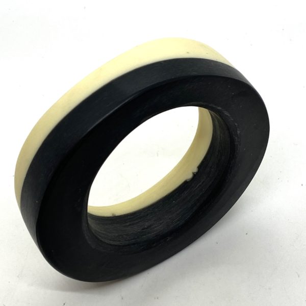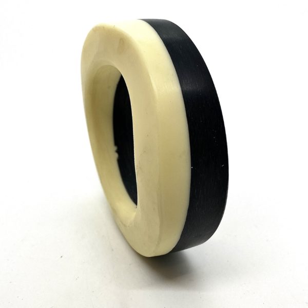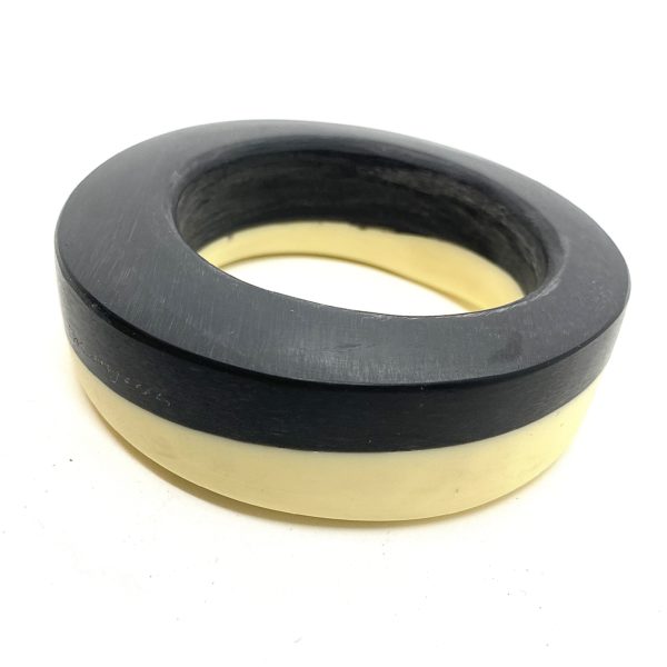 This bangle is a stark bold color message; the duality of black and white is the story here. Bold and big, this is perfect fashion jewelry.