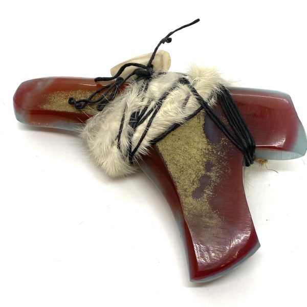 Fascinated by the Native American fetish dolls and shamanic objects, Cara loved to create little objects such as this to put around her home and studio. This one is of a gun form, wrapped with rabbit fur and chips of colored resin.