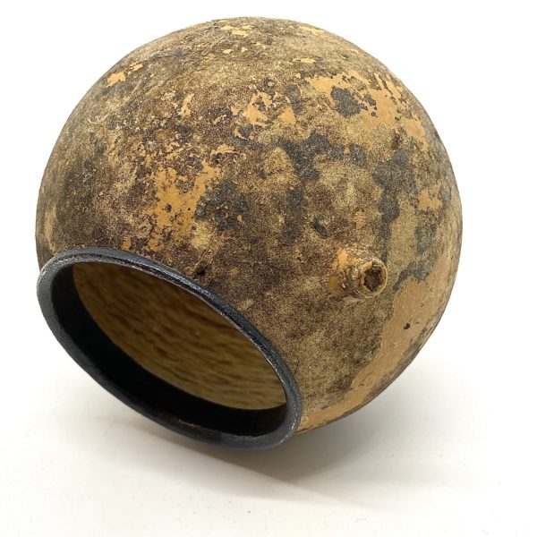 Art jewelry at its finest, this brilliant piece of construction by John Iverson is a gourd that he has fashioned into a sturdy and stunning bangle. Blackened sterling silver rims.