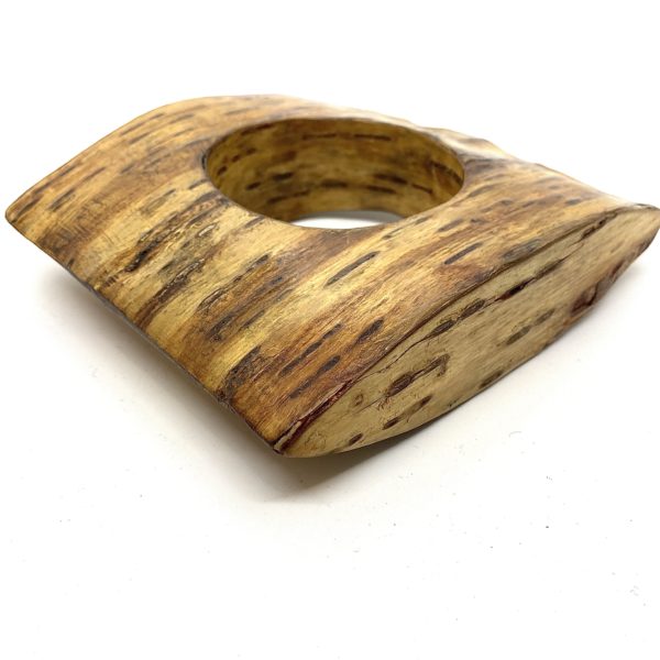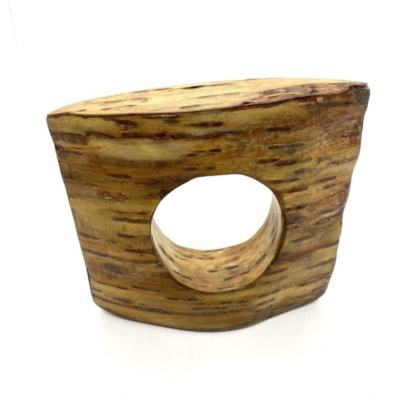 This is a masterful creation by a master of artist jewelry, John Iverson. This hollow bangle is constructed of birch bark and is consistent with his long history of nature inspired jewelry.