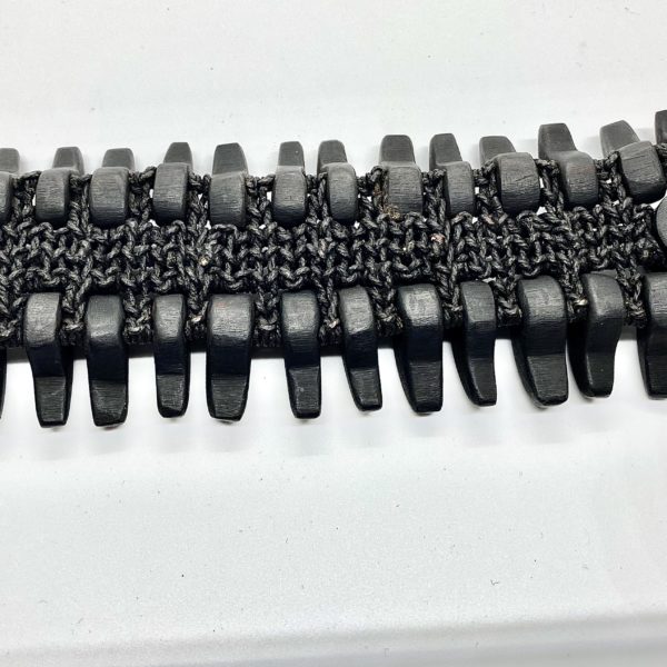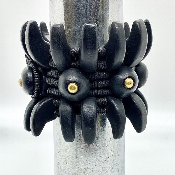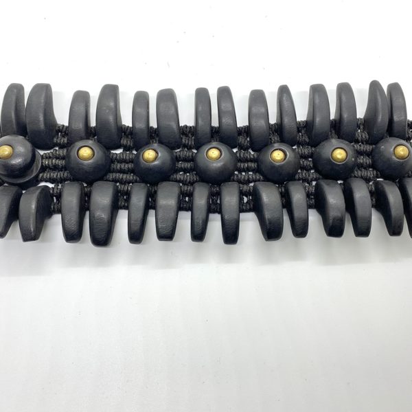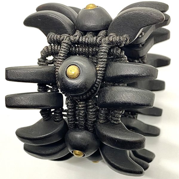 Unlike most of the other ebony bracelets in this collection, this piece is more static, like a sculpture that sits on its own on a table or large on a floor. Imagine! Glamorous touches with forged brass domes to punctuate the forms.