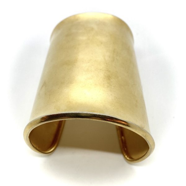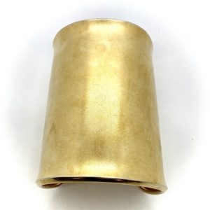 This iconic cuff is 3.5″ long, very malleable for fit, and a stunning dramatic gold plated brass beauty. This is one of the few similar cuffs used by Michael Kors in one of his fashion shows around 2004.