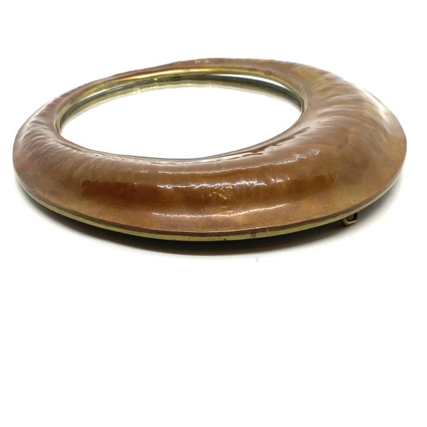 THIS MIRROR is a one of a kind small piece. The copper has been heat treated for a permanent oxidized red color. It is a collectors item for sure.