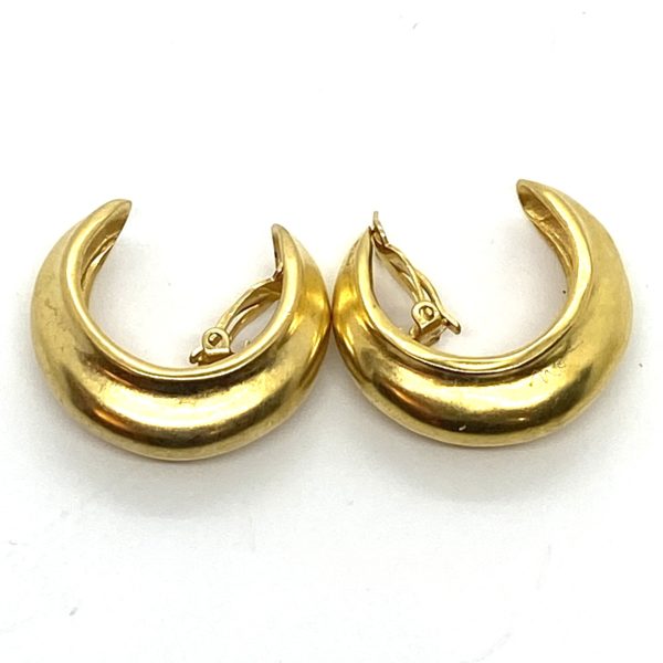 The gold plated brass small bubble hoop earrings are clips, and the most wearable small hoop in the family of bubbles. This design was made to complement Donna Karan collections in the late 80’s and is a classic iconic RLM design. Lightweight and easy to throw on and wear all day, it is one of the most perfect earrings I have ever made. See photo below for size comparisons between all the family of bubble hoops.