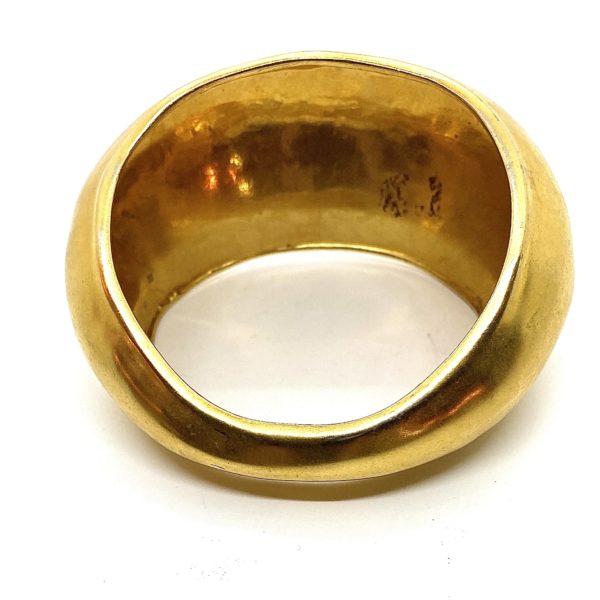 In 1978 I was making a series of very full blown shapes for my jewelry like this bangle. Using a sandbag and forging the metal to an extreme limit, I made these iconic looking pieces of jewelry. Fashion editors went wild for these pieces, and stacked armloads of them for their magazine pages. This is the only one of the one of a kind bubble bangles left in my archives, a major collectors item.