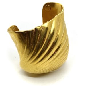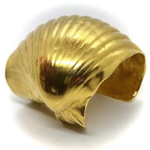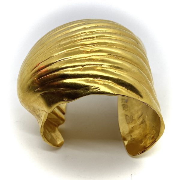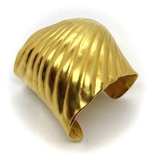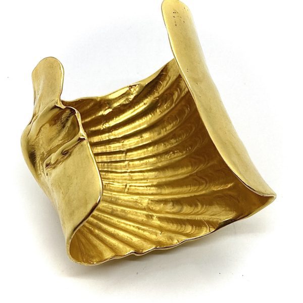 Created in 1981, while developing runway jewelry for KANSAI YAMAMOTO, by pressing warm wax against a seashell , I was able to evolve a whole new category of construction, and texture to my work. I call it wax impressions, and it has been very fun to use this to create themes and directions. Gold plated brass, and luscious looking, this is a comfortable cuff to wear.