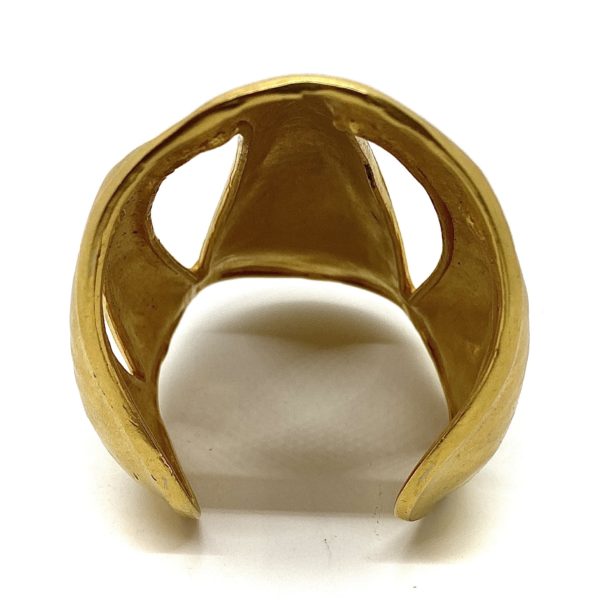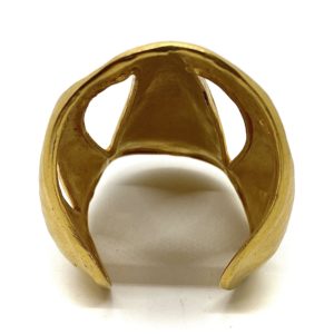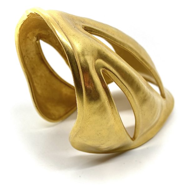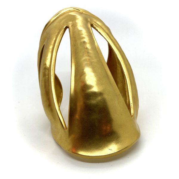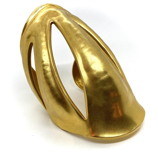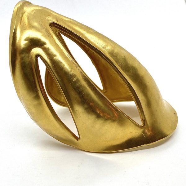 The Robert Lee Morris Gold Plated Vented Cuff is a  one of a kind press piece, this large gold plated brass cuff is not for the shy and retiring type. Bold and theatrical, this is both a great wearable piece as well as a piece of sculpture for the bedroom.