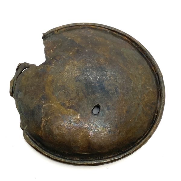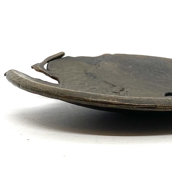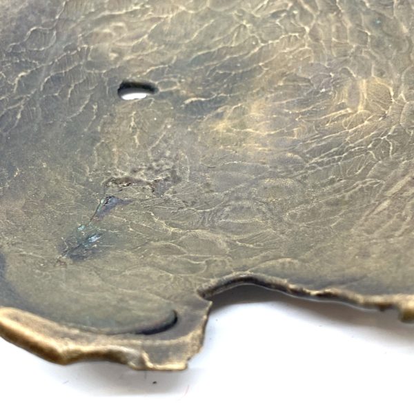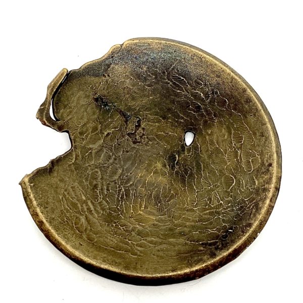 This small but gorgeous little “plate” is for the discerning collector to place into magical positions within ones home. Coupled with a crystal or flower in a vase, the strength of the little slightly eroded and darkly oxidized surface is pure Wabi Sabi design.