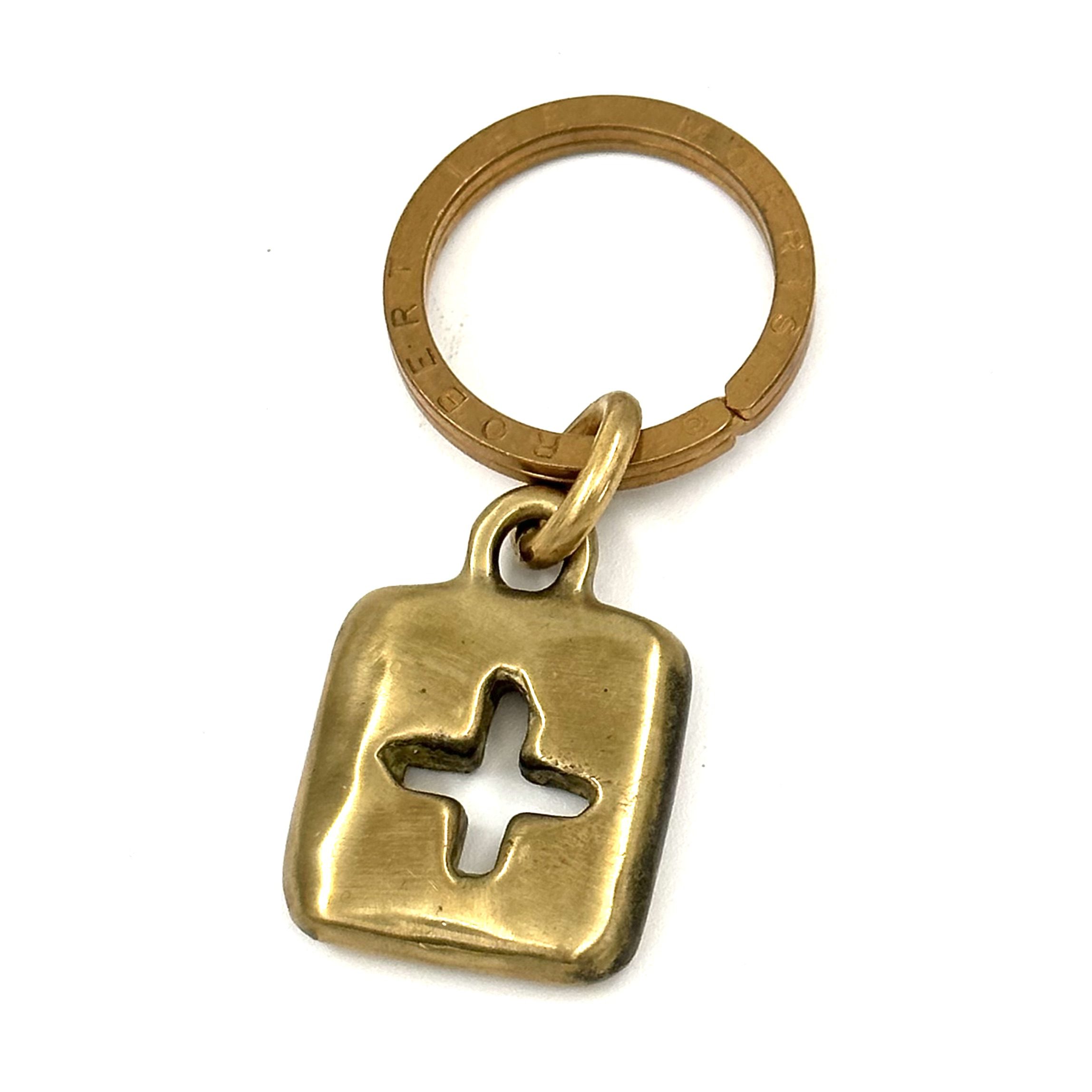 The Robert Lee Morris Brass Pillow Cross Keychain is a favorite pendant form for Morris. Hanging off a signature brass RLM keyring, the Pillow Cross is a thick square of brass with a cross cutout from the center. It has a nicer weight and is very tactile.