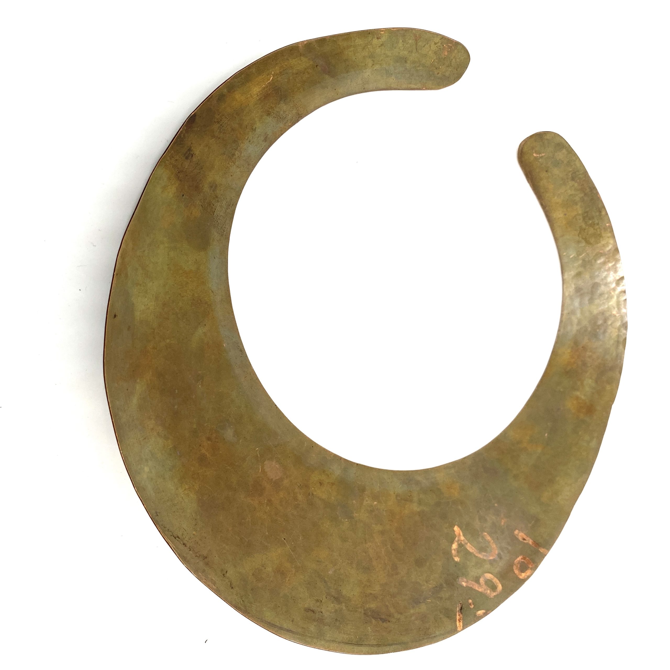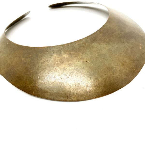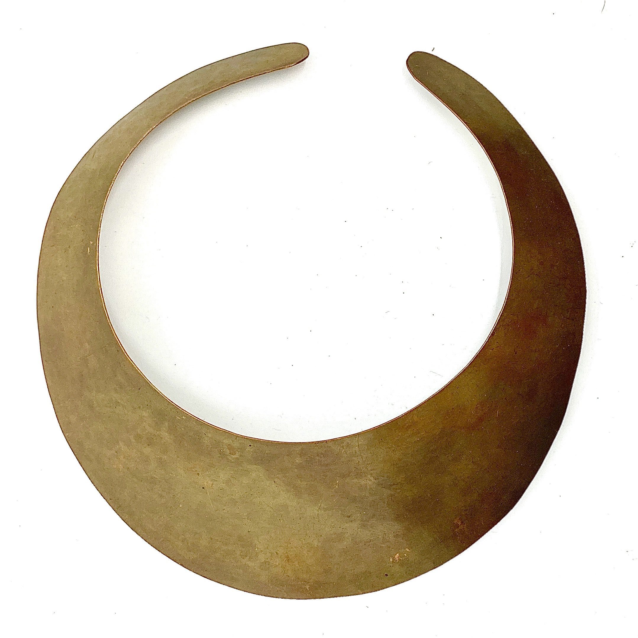Part of the Coty award-winning collection for the 1981 Calvin Klein fall runway show, this Robert Lee Morris Brown Flat Collar, is forged to have a spring-like ability to open enough to slide onto the neck. The luscious oxidized brown coloration is so unusual and makes for a great collector’s item of American fashion history.