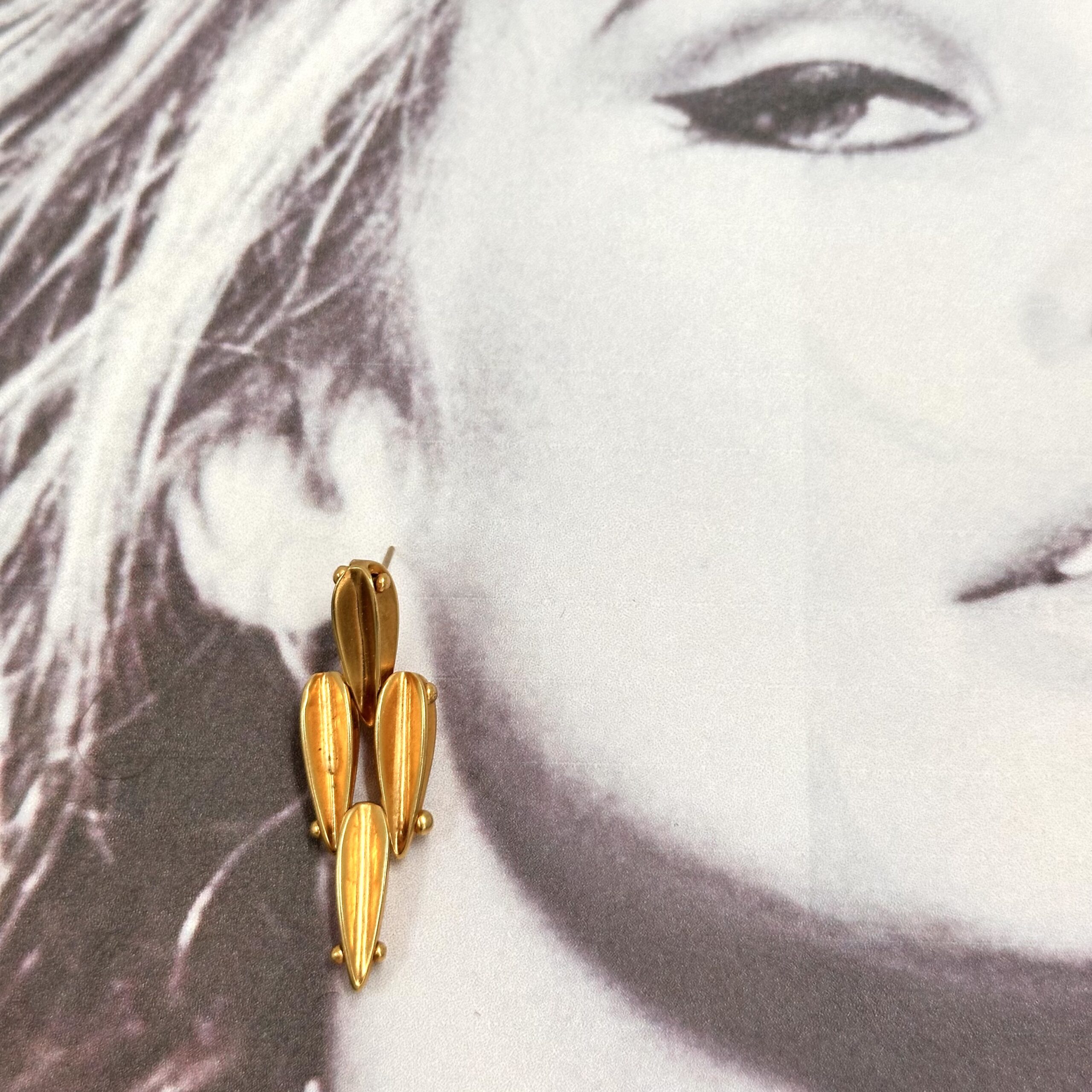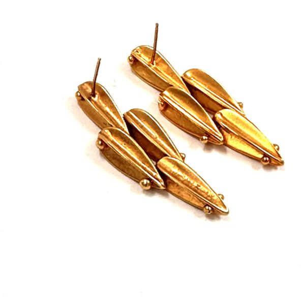This pair of Robert Lee Morris Classic 4 Dart Earrings has posts for pierced ears. It is gold plated brass and vintage from 1980 when the Dart family was born. The four sided dart reflects light in a glorious way.