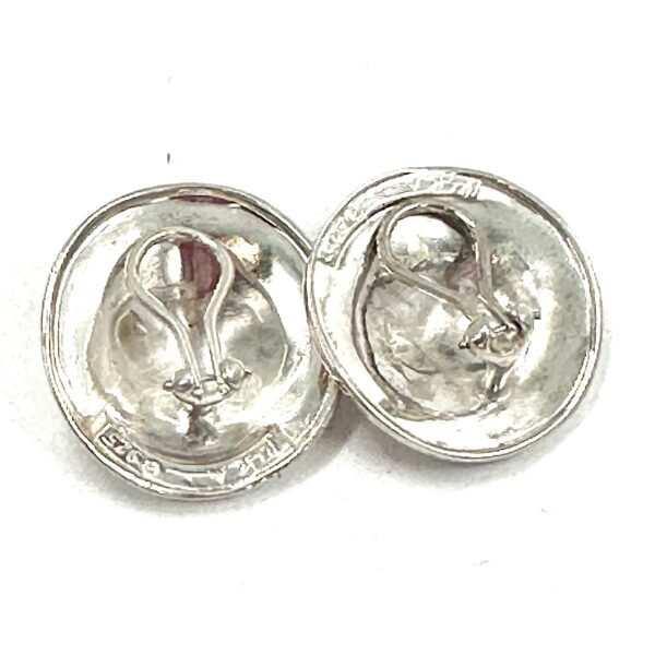 This iconic pair of Robert Lee Morris Classic Silver Disc Earrings, has French clips, a very rare use for Morris who usually used nickel clip backs. The disc was first developed in 1974 as a recognizable, symbol of the brand Morris was building in the early years.
