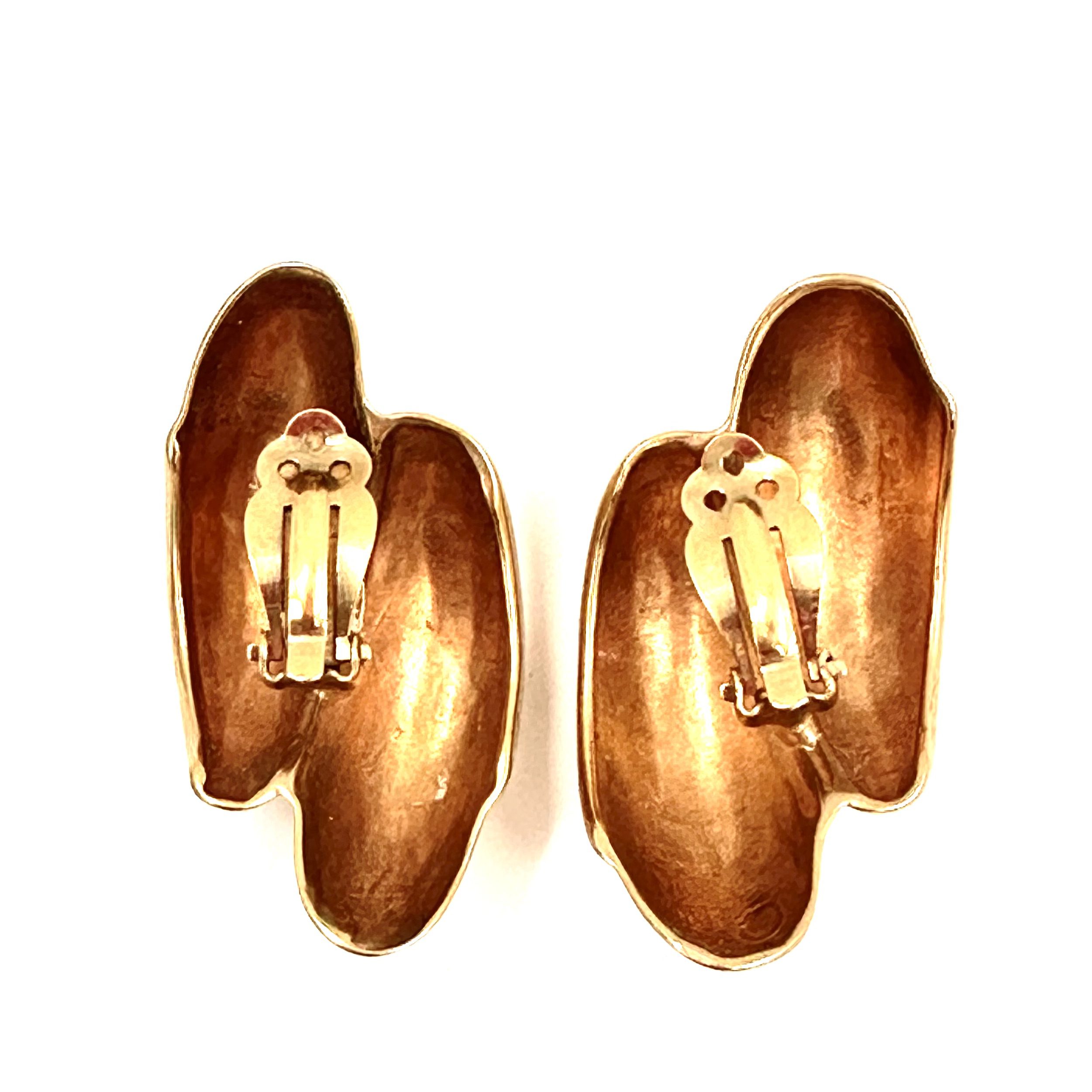 These Robert Lee Morris Double Claw Earrings are bold and as chic today as they were in the late 80’s. These soft flowing curves accentuate cheekbones. Gold plated brass, clips.