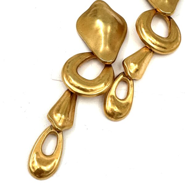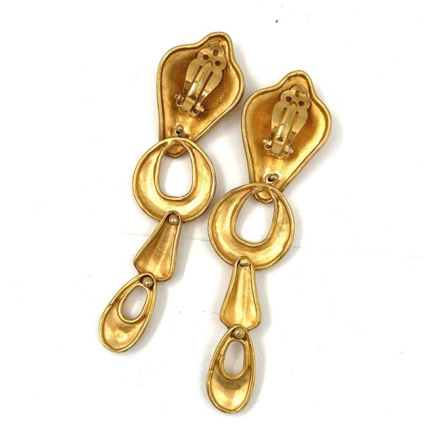 These Robert Lee Morris Extra Long Gold Plated Earrings are very dramatic and perfect runway jewelry. In the 80’s long earrings were very popular, and this kind of look was perfect for the catwalk where jewelry needed to be seen from a distance. Gold-plated construction of brass components that I was inventing as fast as I could, during this decade of extreme fashion excitement and growth, Iman, the supermodel was my biggest fan for these glamorous pieces. She had a long neck to show them off!