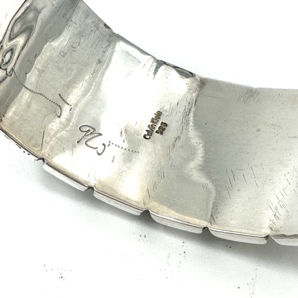 Calvin wanted Morris to create a special unique collection of silver jewelry, bracelets, earrings, and hair barrettes that would smack of the clean minimal CK style, and this is what it looked like. Calvin and Robert had worked beautifully together in 1981 and this was a renewal of that bond. Sold only in his top stores, beginning with the flagship on Madison Avenue in New York City, the craftsmen in the RLM workshop in Soho endeavored to make this very iconic collection. Most of these pieces now listed on this website are actually marked with the Calvin Klein logo and re the remaining prototypes that Morris has in his archives. Calvin was inspired by the jewelry that Georgia O’Keefe wore, which had the feeling of classic Southwestern jewelry.