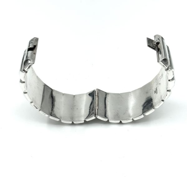 Calvin wanted Morris to create a special unique collection of silver jewelry, bracelets, earrings, and hair barrettes that would smack of the clean minimal CK style, and this is what it looked like. Calvin and Robert had worked beautifully together in 1981 and this was a renewal of that bond. Sold only in his top stores, beginning with the flagship on Madison Avenue in New York City, the craftsmen in the RLM workshop in Soho endeavored to make this very iconic collection. Most of these pieces now listed on this website are actually marked with the Calvin Klein logo and re the remaining prototypes that Morris has in his archives. Calvin was inspired by the jewelry that Georgia O’Keefe wore, which had the feeling of classic Southwestern jewelry.