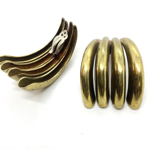 These Robert Lee Morris for Donna Karan Brass Ribbed Earrings, from 1986 fall collection are both iconic Donna and Robert. Bold, Sculptural, exciting scale and shape, and the color is just gorgeous, a brown with bronze highlights and they are clip ons! Created to blend to blend with the rich heavy cashmere and wool of the DK winter collection, the earrings are a mirror of the essence of the entire collection. This is why the collaboration between these two designers was so magical. Robert was able to condense the essence of the collection into element, and single shapes that spoke volumes about the entire group. These earrings are big. They are not for everyone. they are runway scale. But very fun and glamorous.