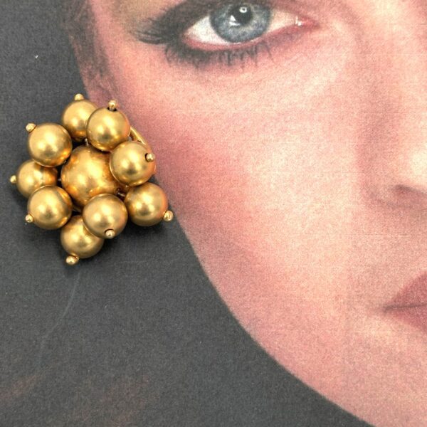 These playful Robert Lee Morris for Donna Karan Bubbles Earrings are so fun. The size and golden colors of these gold plated brass balls, affixed to a frame is dramatic fashion.