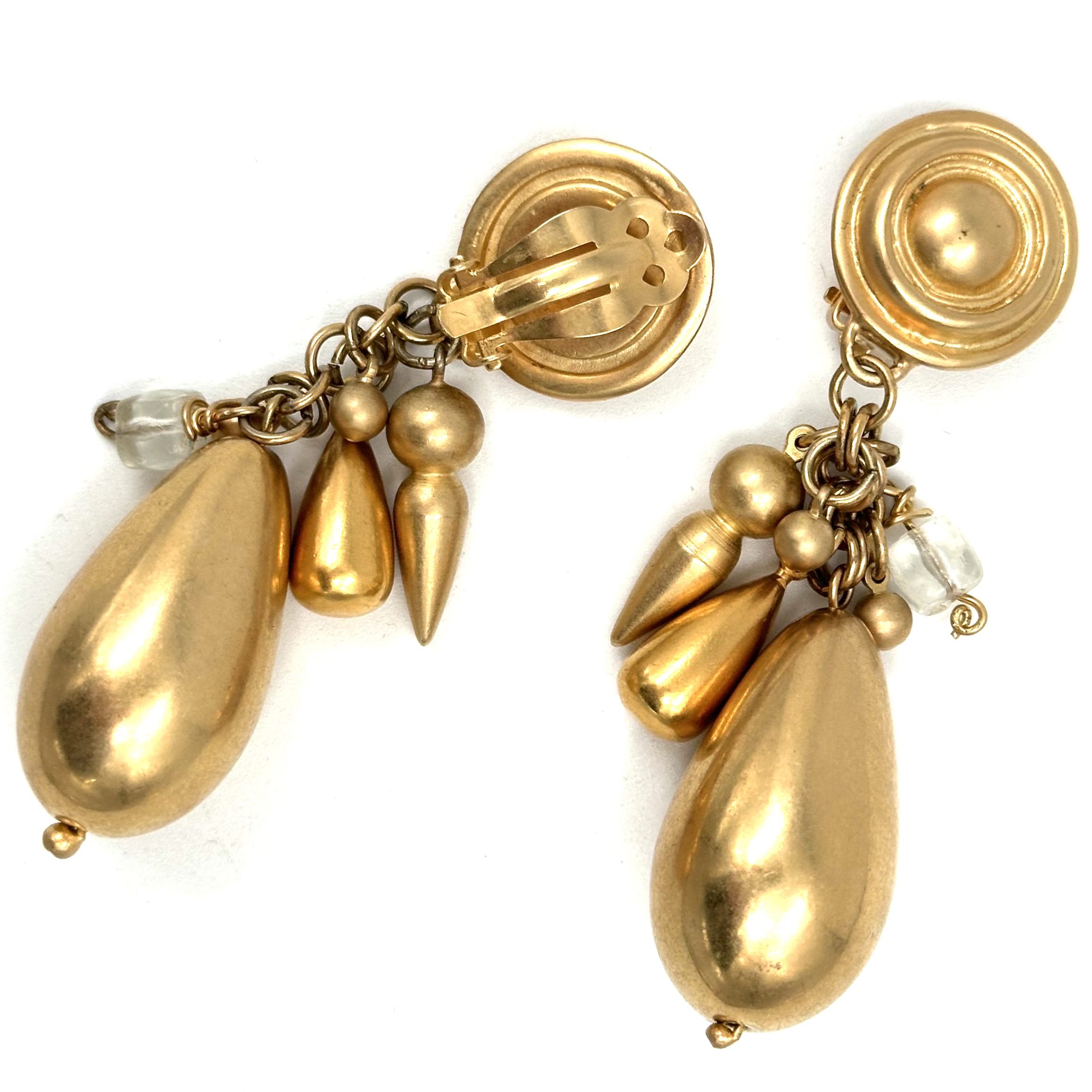 These elegant Robert Lee Morris for Donna Karan Dangling Bat Earrings are luxuriously long and sexy. Gold-plated brass components make this long-drop chandelier style glow gloriously, and the many tiny dangling teadrop shapes give it an unusual character. Drapy and sensuous these earrings are great for evening and fancy affairs.