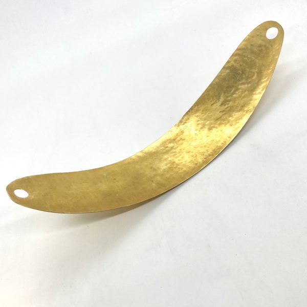 This is a spectacular accessory for so many wardrobes around the world, a gold belt, held in place with a cord, or ribbon, even a scarf or sash, and the narrow width of just over 2″ and a length of 12″ across. Gold plated hammered brass.