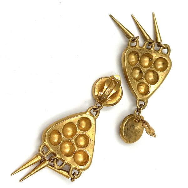 These super fun-looking Robert Lee Morris for Loewe Gold Plated Chandelier Earrings were from a collaboration Morris had with the Spanish luxury company in 1993. The theme was based on architectural details in Spanish buildings and armor. The use of multi-domes was part of the theme. Clip earrings. Gold-plated brass.