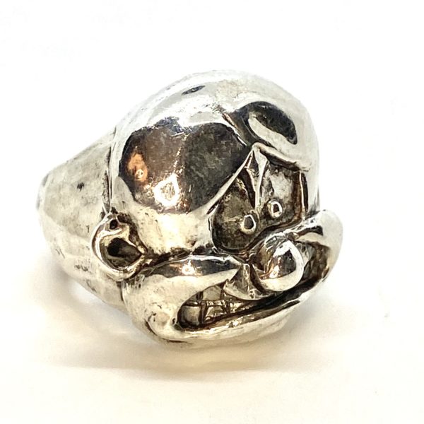 In 1994, I had a license with WARNER BROTHERS to create silver jewelry and leather accessories for their newly born retail shops. This piece is from the Looney Tunes collection, ( and is a major piece of carving I have to say). I love carving wax, and enjoyed making this entire collection of characters and faces. Elmer Fudd with his droopy voice and face, is captured perfectly in this handsome bold ring. I love it. It is my fave of them all.