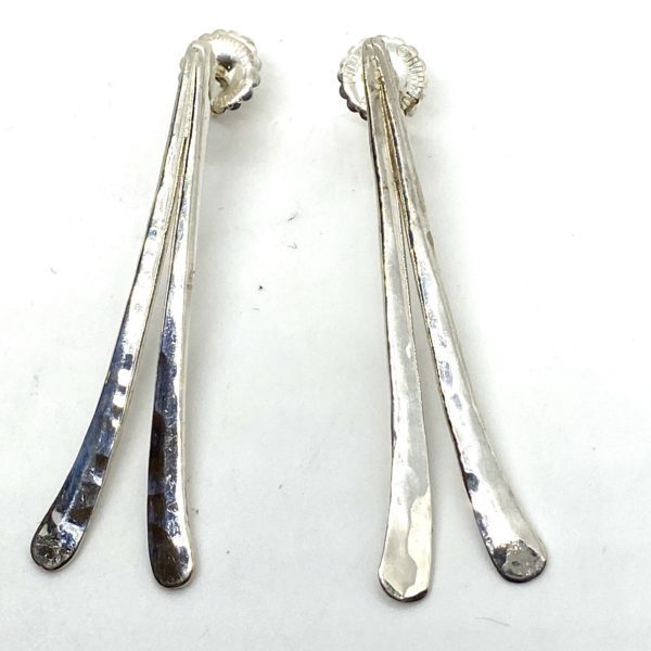 This is a hand forged sterling silver earring with 14k post. Created at the anvil in 1991.