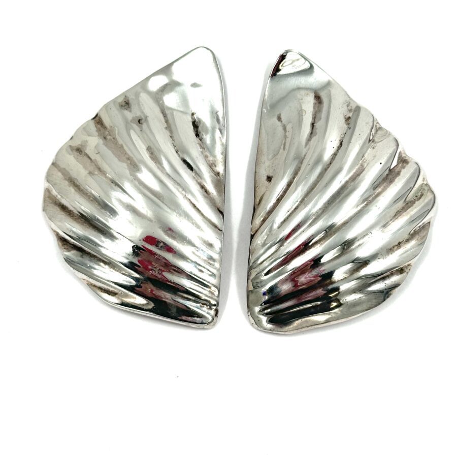 This gorgeous pair of Robert Lee Morris Giant Silver Shell Earrings are high glamour. Designed for the runways of New York City, looking like wings at ones ears, these are bold and spectacular. Clips.
