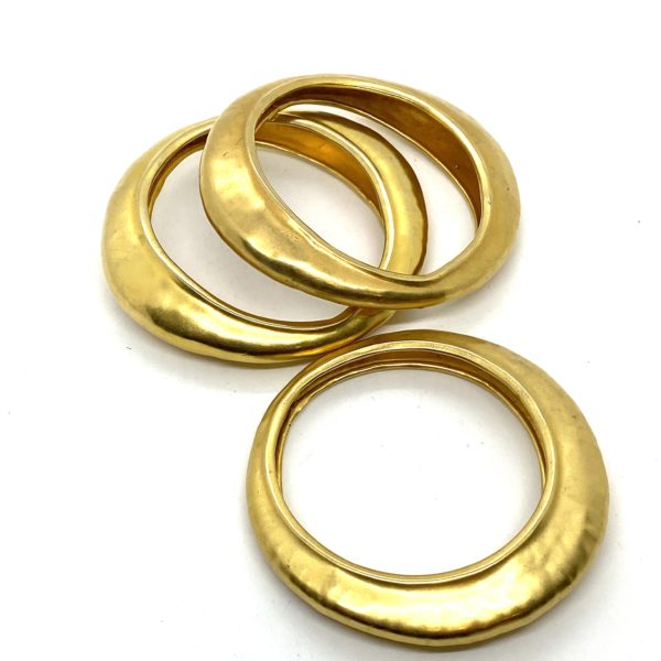 This Robert Lee Morris Gold-Plated Bubble Bangle is a rare piece from the 1981 collection of jewelry for Calvin Klerin’s fall runway show. It was worn stacked with other similar bangles. Easy to slip onto a normal sized hand.