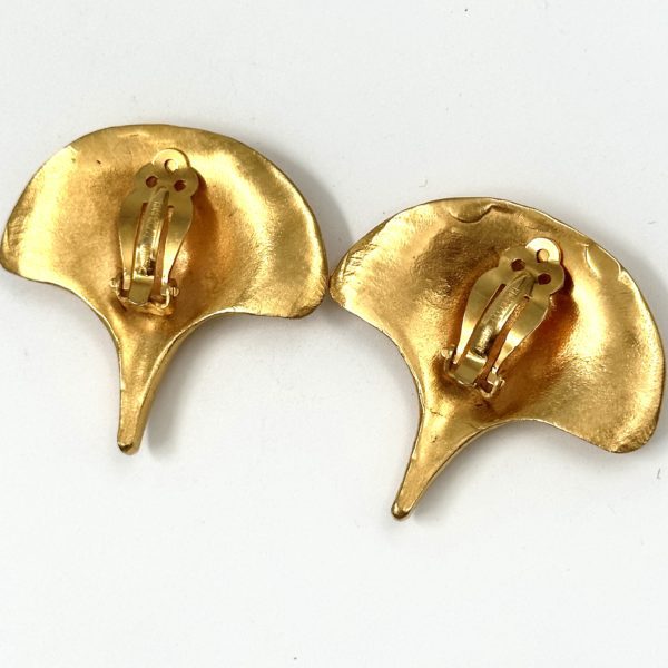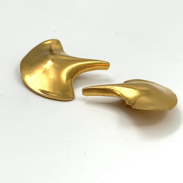 These elegant Robert Lee Morris Gold Plated Stingray Clip Earrings are softly organic, and fluid design. Shaped like a stingray fish, one of the favorite motifs Morris loves to use, these forms fit beautifully on one’s ear. The large scale is typical of the bold gold earrings Morris created during the 1980s.