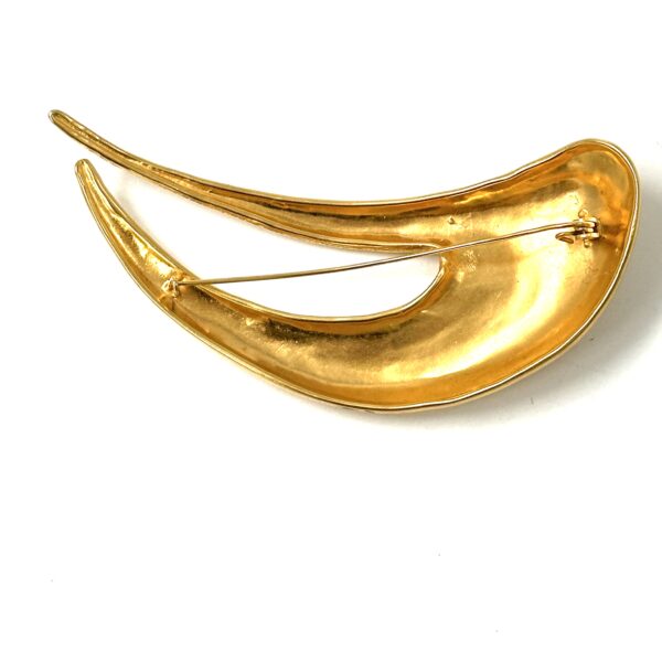 Robert Lee Morris Gold Windswept Pin. A classic and iconic example of the organic flow of RLM jewelry. This bold and oversized pin is a glamourous statement piece for a coat or sweater. The curvaceous swooping lines of this miniature piece of art for the body is so beautiful. It is iconic RLM style. Gold plated brass.
