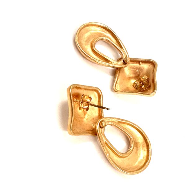 The name of these Robert Lee Morris Home Alone Version Earrings comes after another pair that are smaller and look a bit similr to the earrings Katherine Ohara wore in the movie Home Alone. Gold Plated brass 14k posts. The top is an iconic square and the bottom an iconic full bodied loop.