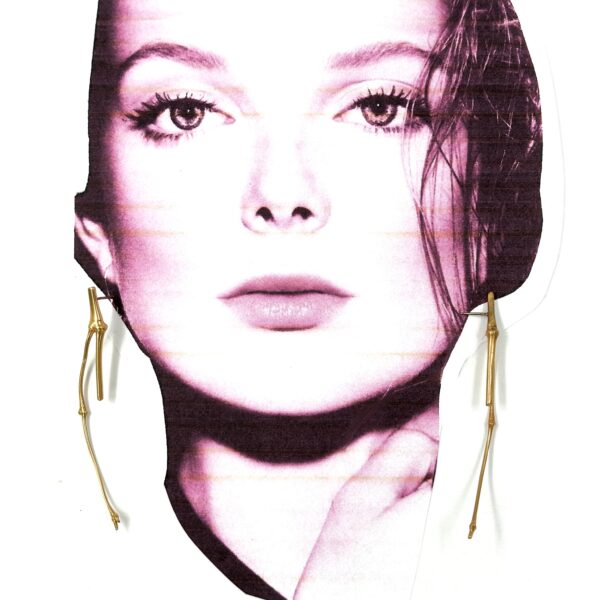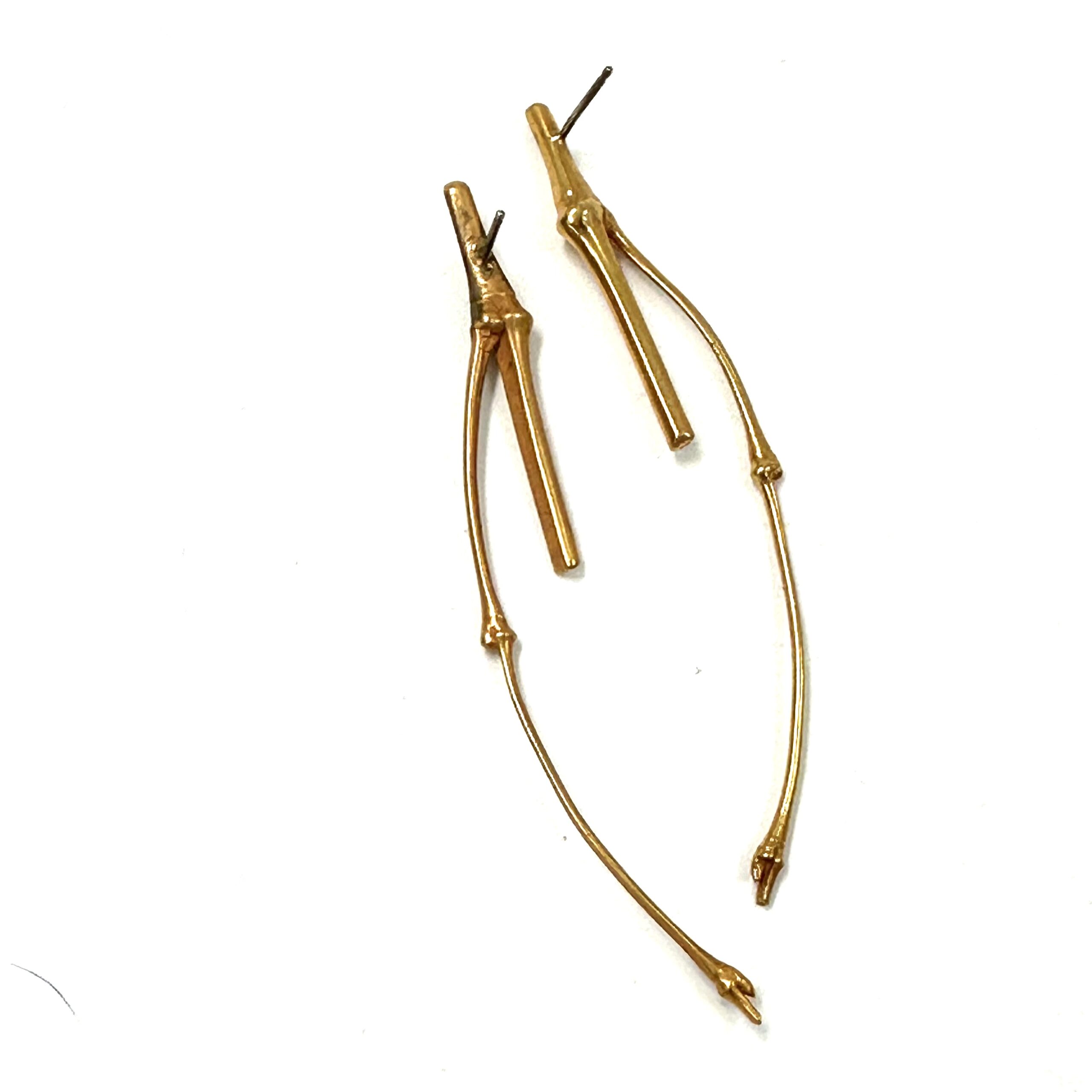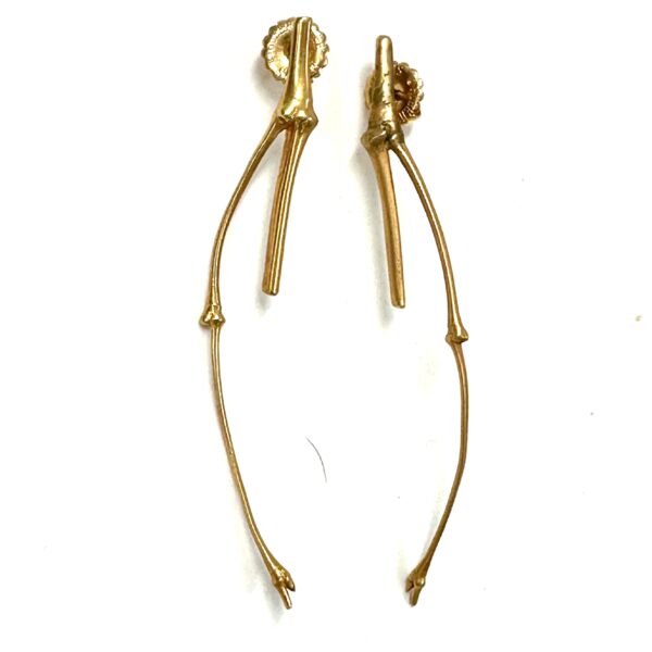 Created from a piece of real bamboo, Robert Lee Morris experimented with casting real objects in the early part of his career, 1980-83. Delicate castings of gold-plated brass, with 14k posts, soldered on make a beautiful unique earring.