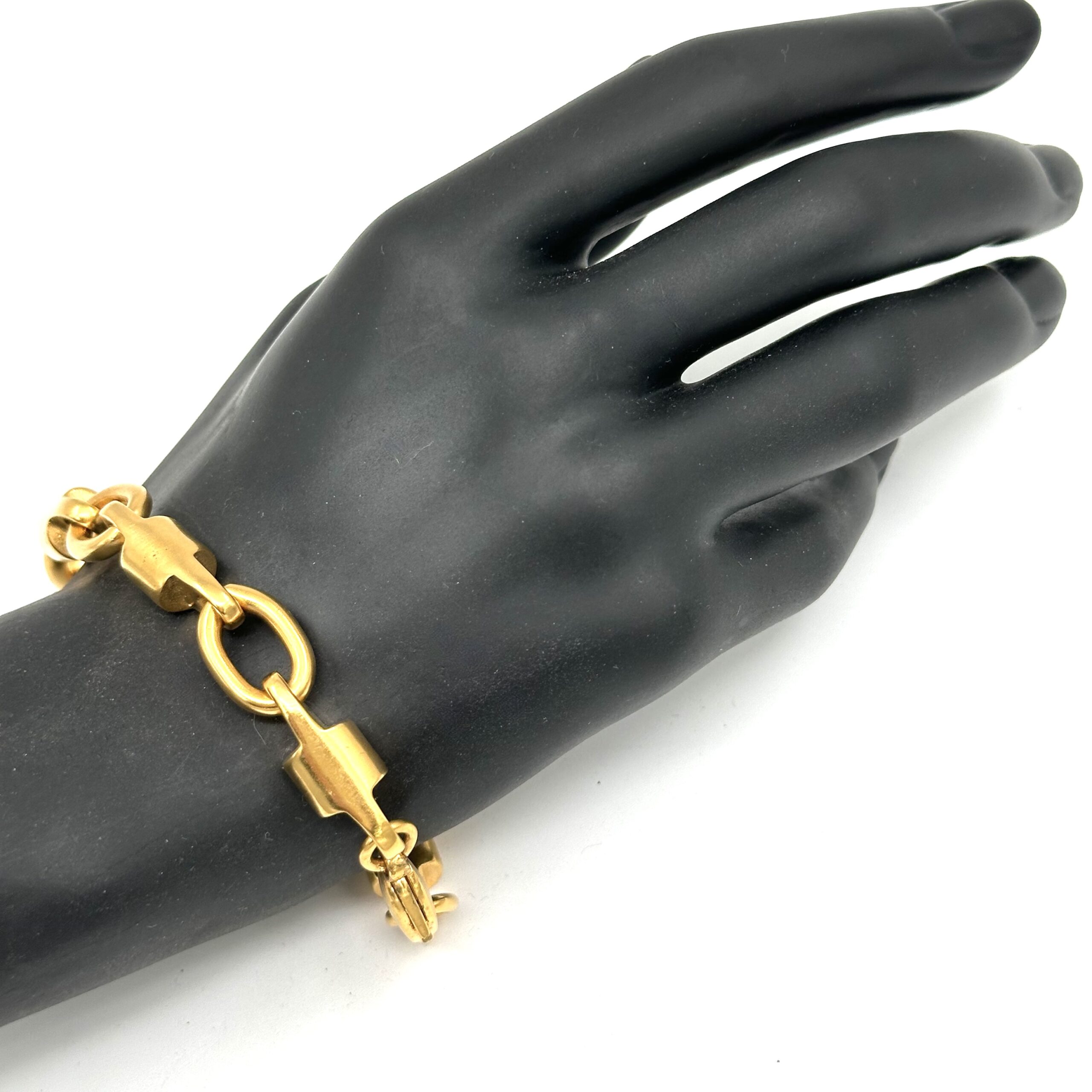 This Robert Lee Morris Medium Neo Cross bracelet is another iconic look from Morris. It is matte gold plated brass, using solid brass castings which give it a good heft. Originally in silver for the men’s collection, this is a handsome masculine piece inspired by a drawing from a superman Comic book.