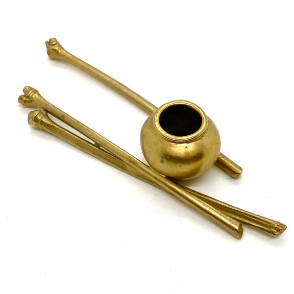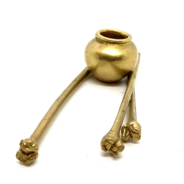 For some crazy reason this is one of my favorite pieces in my home collection. It is a tiny heavy cast brass vase, gold plated, sculpted as part of my micro vessel collection, and flanked by three lengths of cast bamboo. It looks so beautiful with a little flower. Perfect for the bedside table.