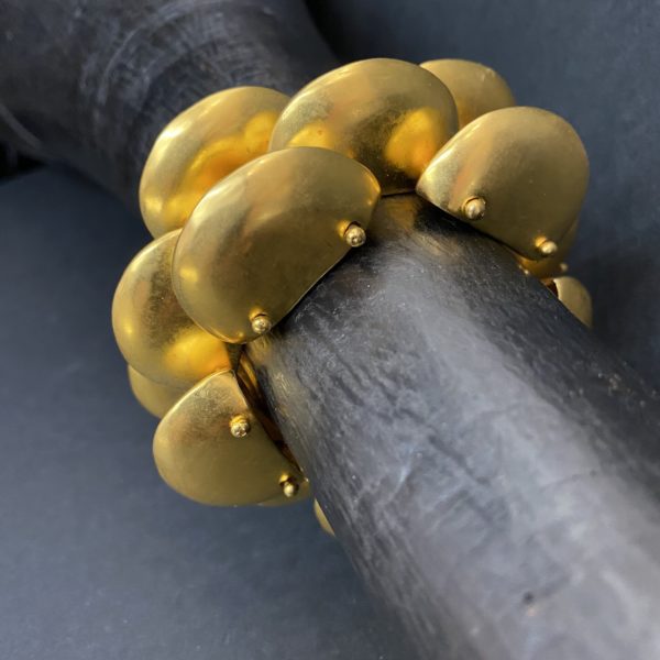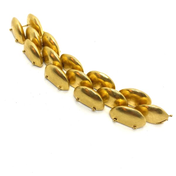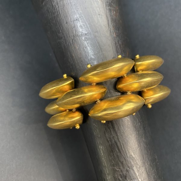 This handsome iconic gold plated bracelet used to be one of  my best selling pieces at Neiman Marcus, appealing to the very stylish customer. The engineering makes the bold construction flow easily around the wrist, a statement bracelet no doubt.