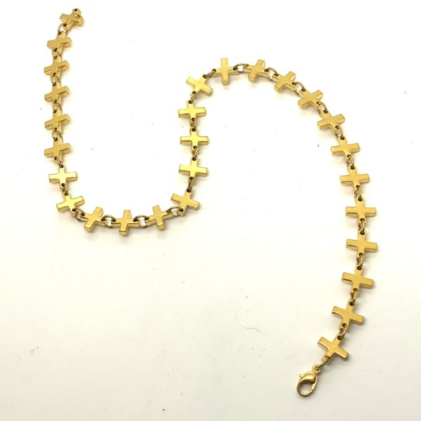 The most iconic chain of cross forms, linked by jump rings, in a simple manner. gold plated brass, and 17.5″ long, a perfect piece for the RLM collector.