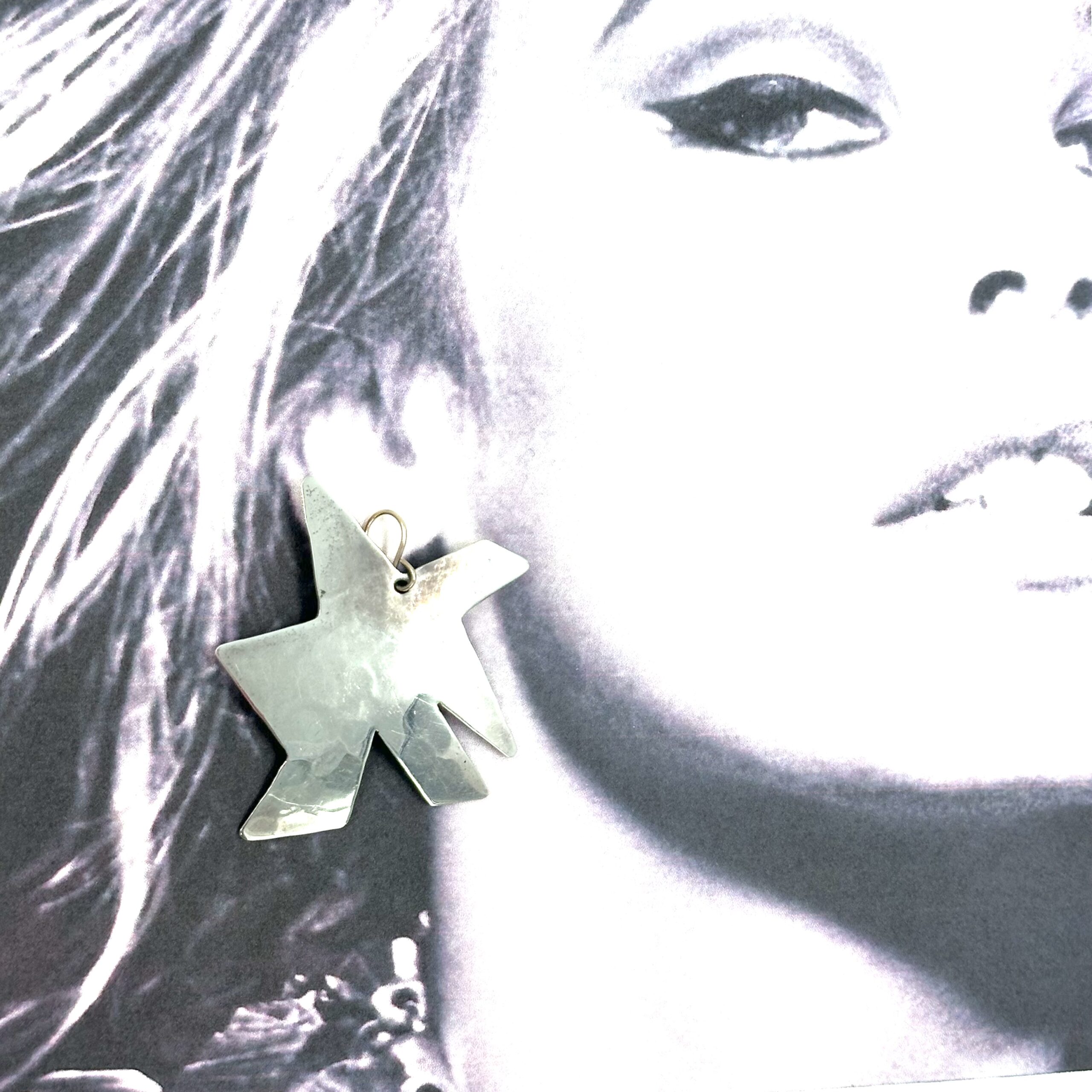 These Robert Lee Morris Silver Abstract Star Earrings hang from 14k wires. These are pre-owned and very rare. One of a kind, cut our of sterling silver sheet and forged with a hammer, these are fun sparkling earrings.