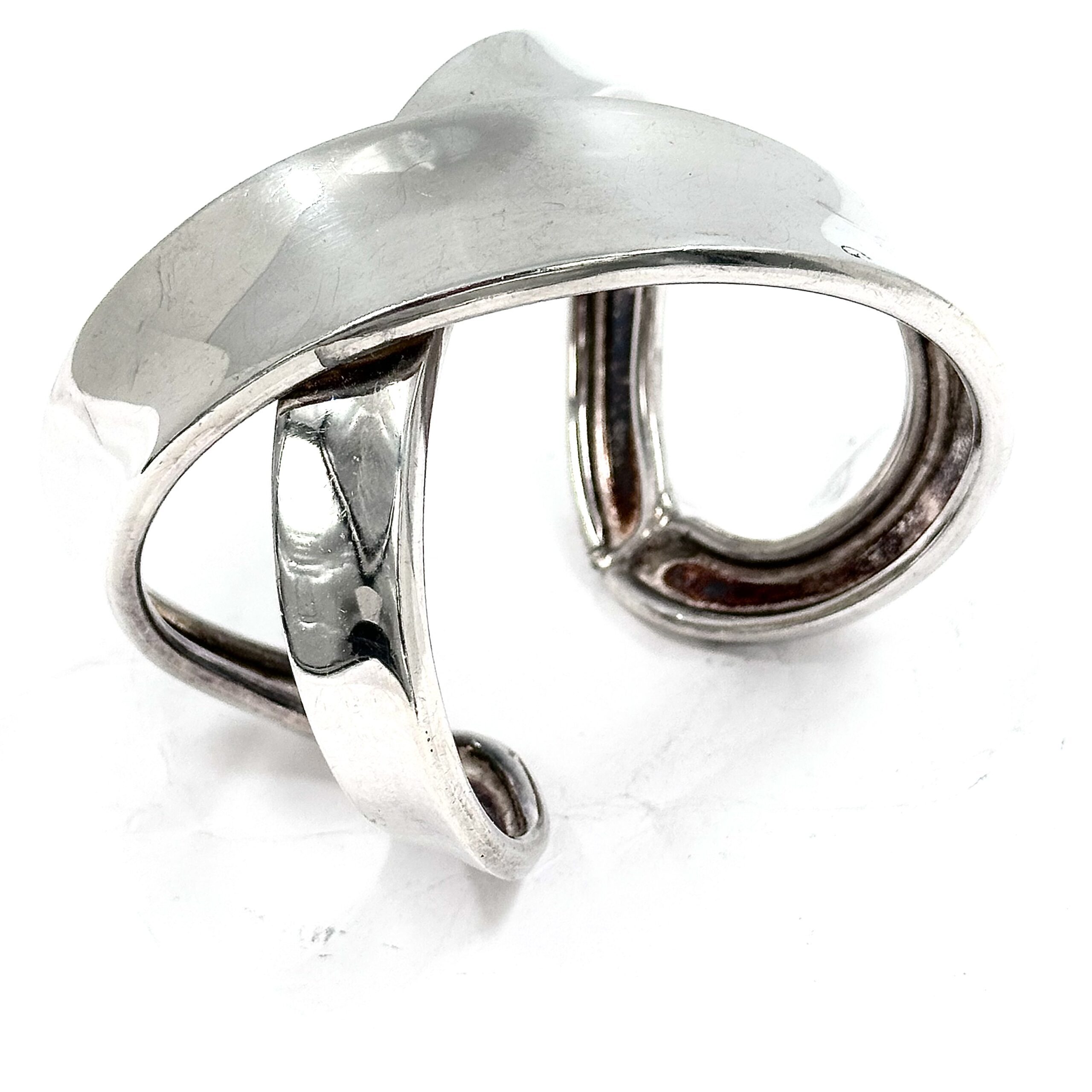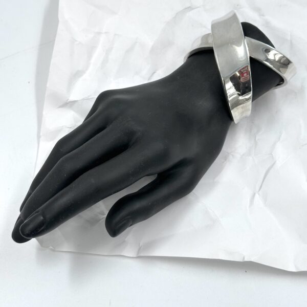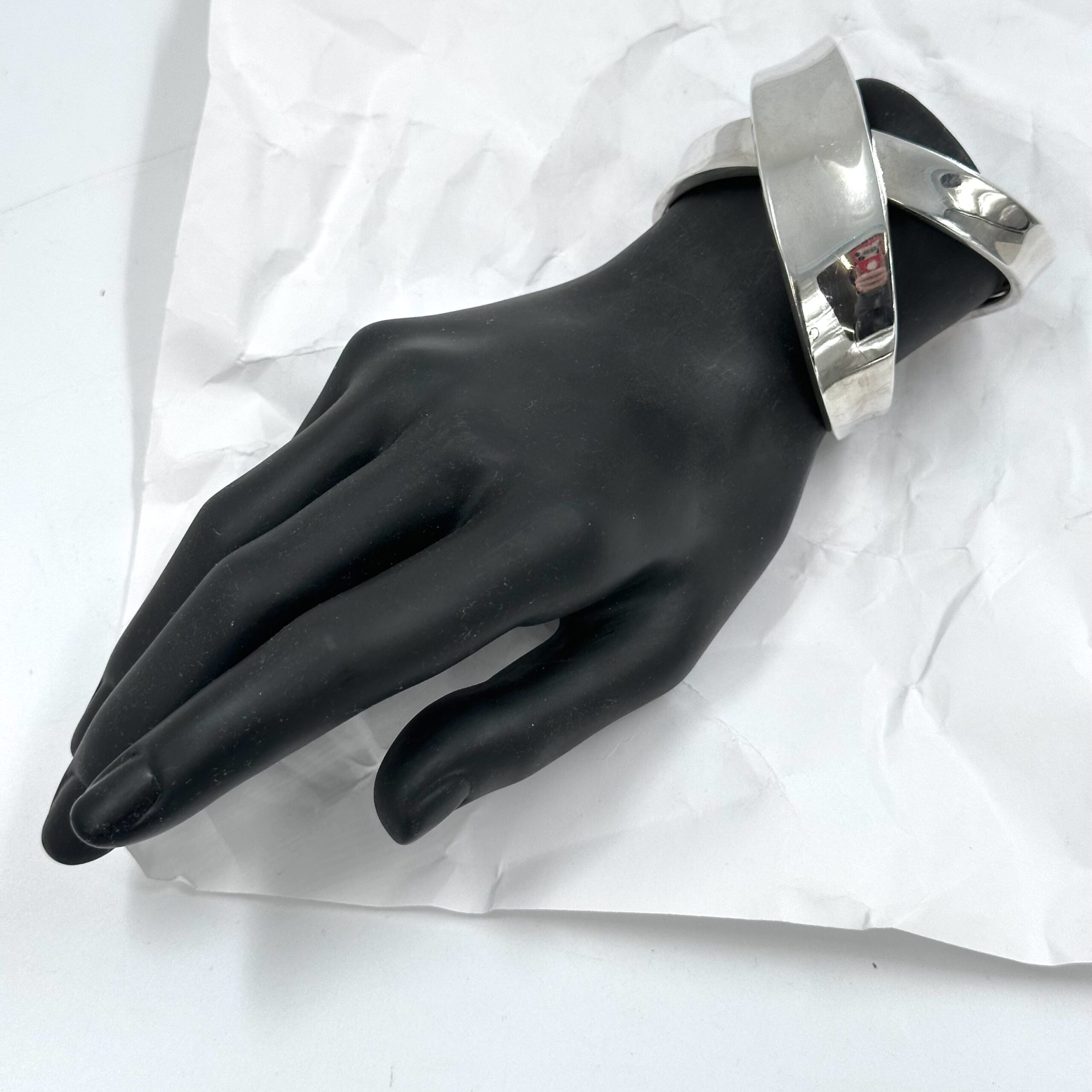 This very small size Robert Lee Morris Silver Eternity Cuff is a beautiful finished piece. While it is for a very small wrist, it packs a bunch with its weight at 2.5 oz. Dramatic sweeping lines make this cuff so beautiful.