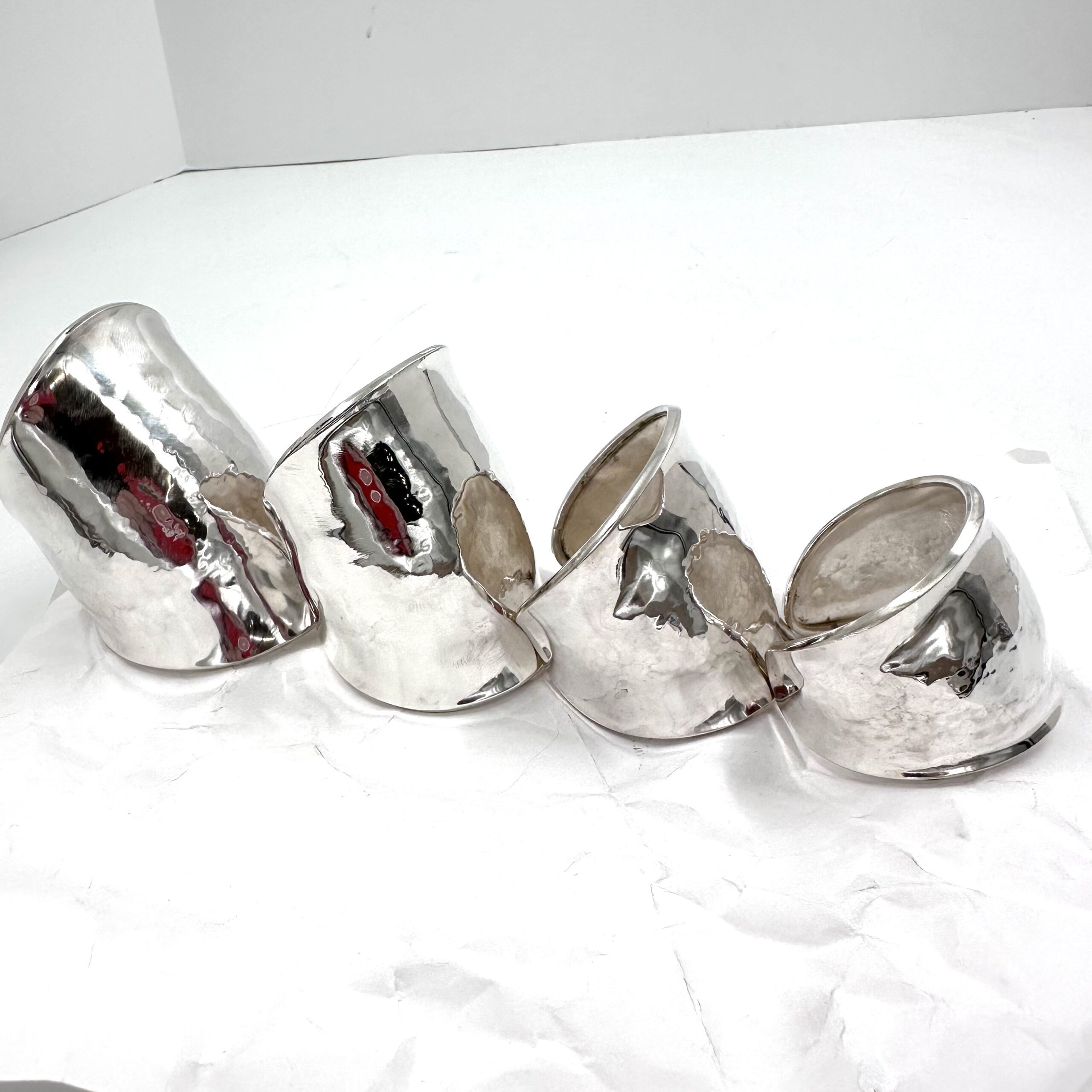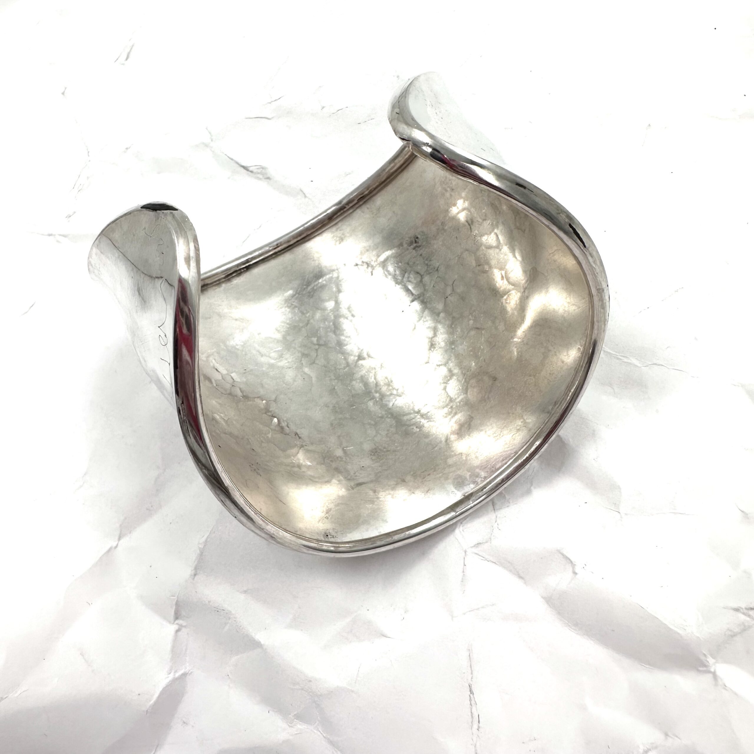 This Robert Lee Morris Silver Gamma Cuff is handmade by Morris himself, and created in 2025. It is not a casting but a construction of sheet and wire, which is a classic iconic technique Morris has made his signature look. There are four similar cuffs all made during the same time periodic 2025 and this one is the second to smallest which is third in the group shot in the thumbnails.