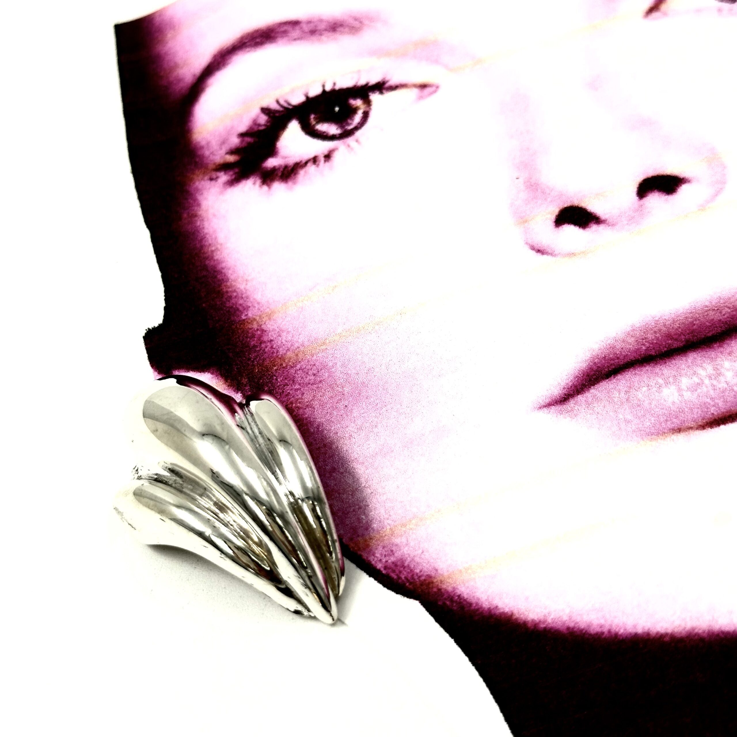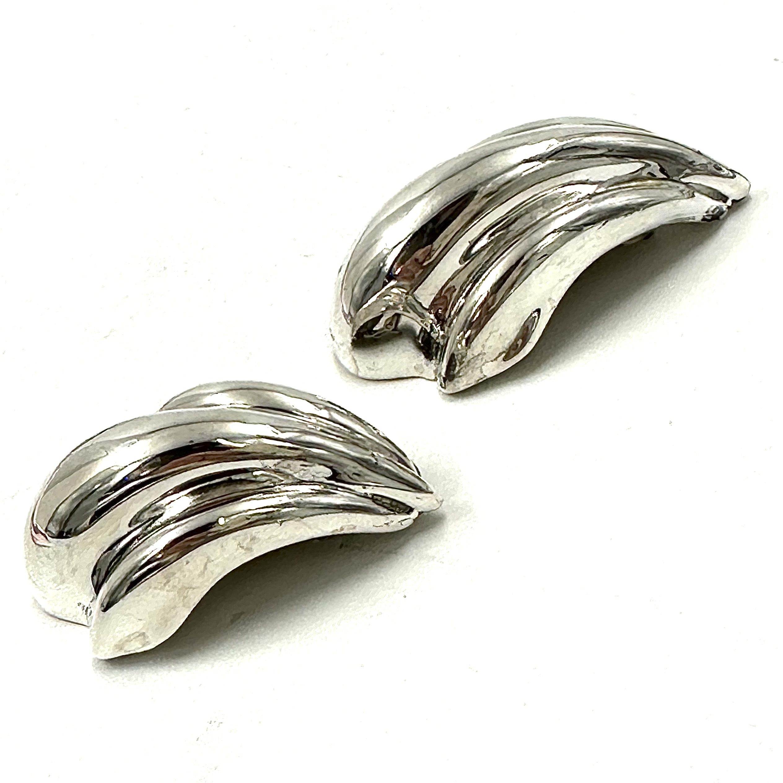 These dynamic and dramatic Robert Lee Morris Silver Large Ferret Foot Earrings are clip-on and very comfortable to wear. The exaggerated height of these very curvaceous forms is very much what the bold style of RLM jewelry brought to the NYC fashion world. Called Ferret Foot due to the pinched flowing of the raised volumes.