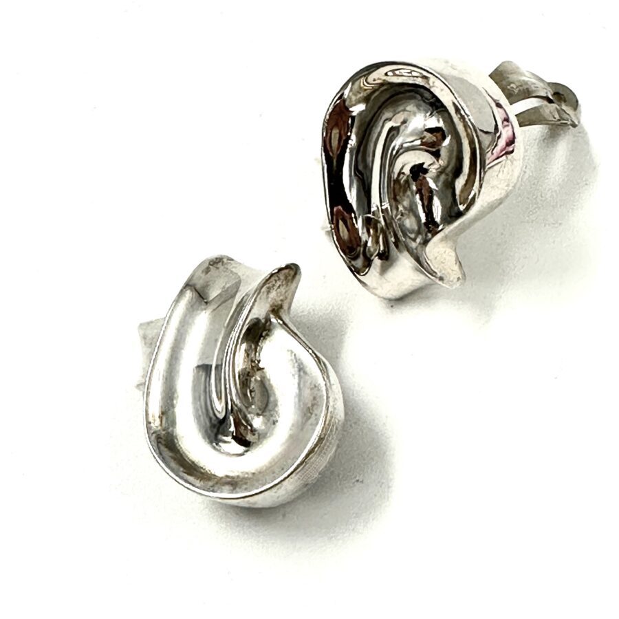 These Robert Lee Morris Silver Overpass Button Earrings are elegant chunky and tailored looking. The carved form is quite dramatic with a high ridge of turning twisting lines. Clips.