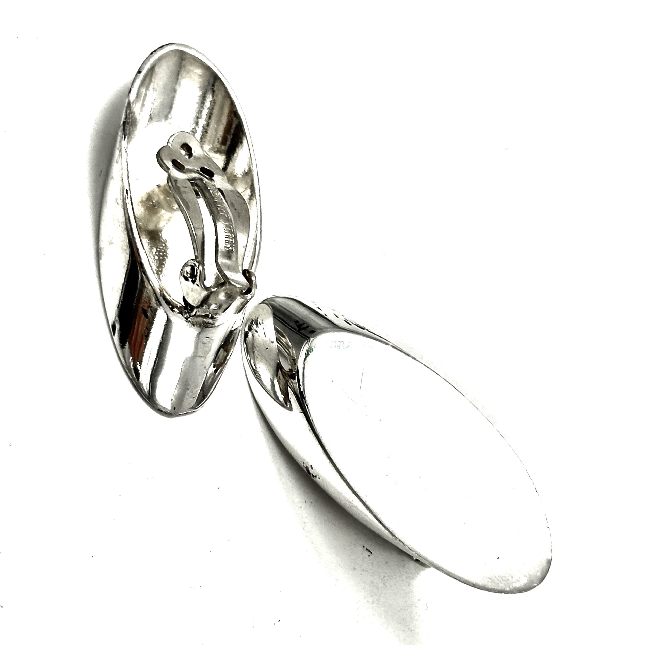 These classic and iconic Robert Lee Morris Silver Slice Earrings are so modern and sleek. The flat plane and the curved edges make this a dramatically futuristic design, and they are clip on. Hollow in the back but give the feeling of being very substantial.
