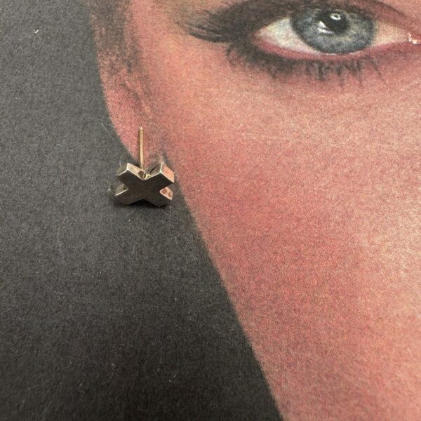 Thee classic Robert Lee Morris Silver Small Cross Stud Earrings are signature designs. Small sculpted silver crosses .35″ across with 14k gold posts make this an earring to simply leave in all the time.