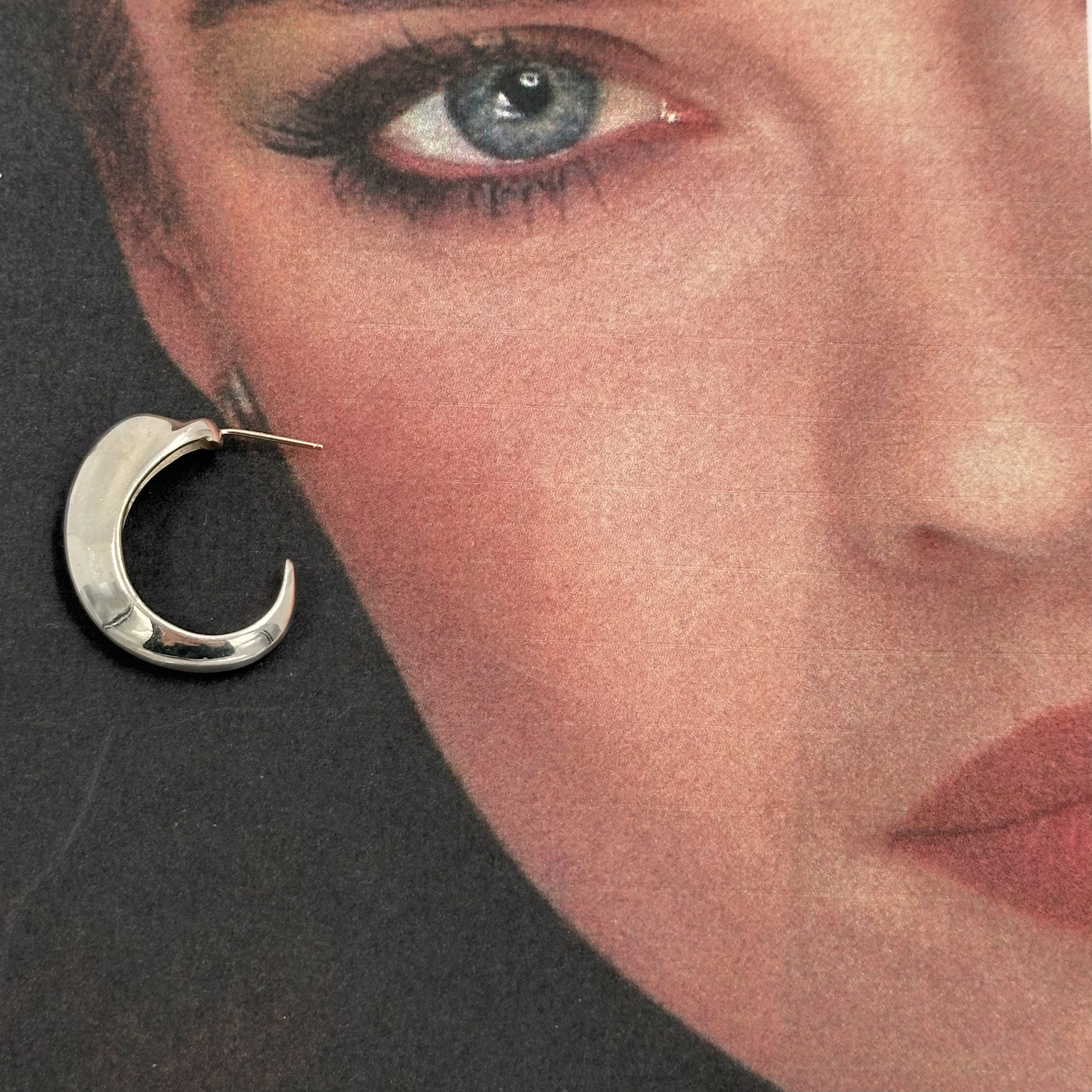These Robert Lee Morris Silver Tapered Hoop Earrings are small, discrete but iconic. The top of the bubble shape tapers down to a point in a dramatic sweep. 14k posts