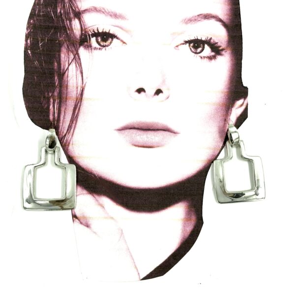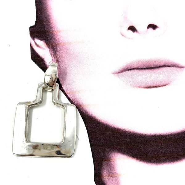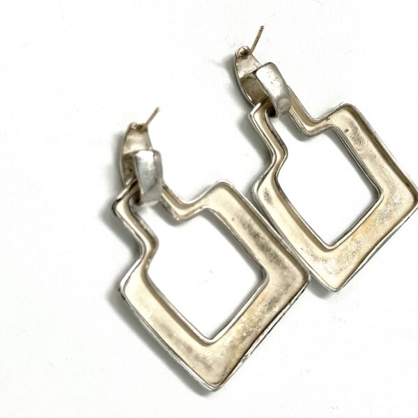 These Robert Lee Morris Square Silver Doorknocker Earrings are pierced with 14k posts. The elegant and iconic squared hanging piece was created with a sheet and wire construction, a very iconic Morris look. Doorknocker earrings always have a top and a bottom that swings freely from it. Classic and sleek, modern and architectural these earrings stand out in a crowd.