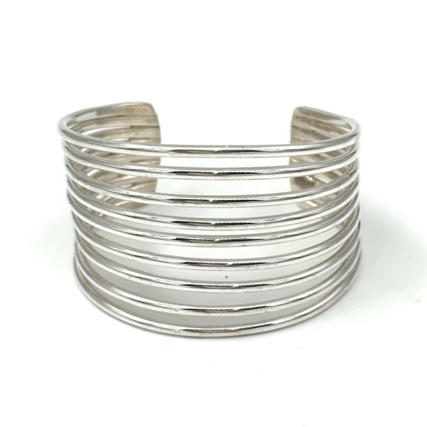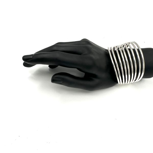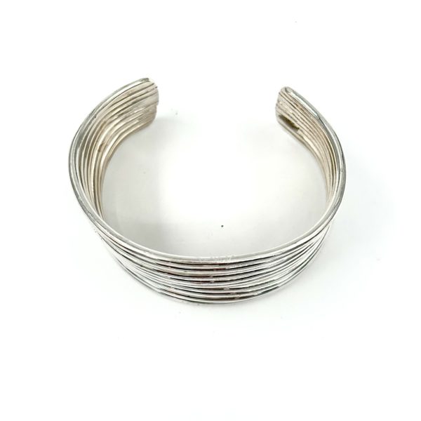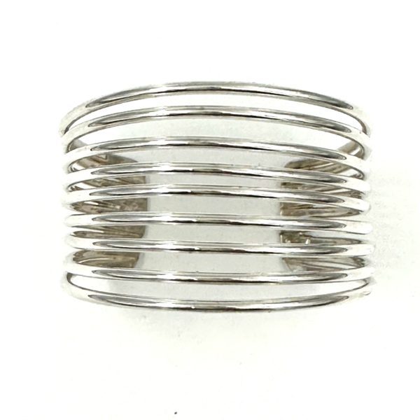 This wide and dramatic Robert Lee Morris Sterling Silver 9 Wire Cuff is classic and dramatic. Like a silver slinky, this cuff is airy and yet bold, with a very classic iconic look of RLM. It is chunky and has a nice weight to it, at 2.5 oz of silver. Great addition to any chic wardrobe.