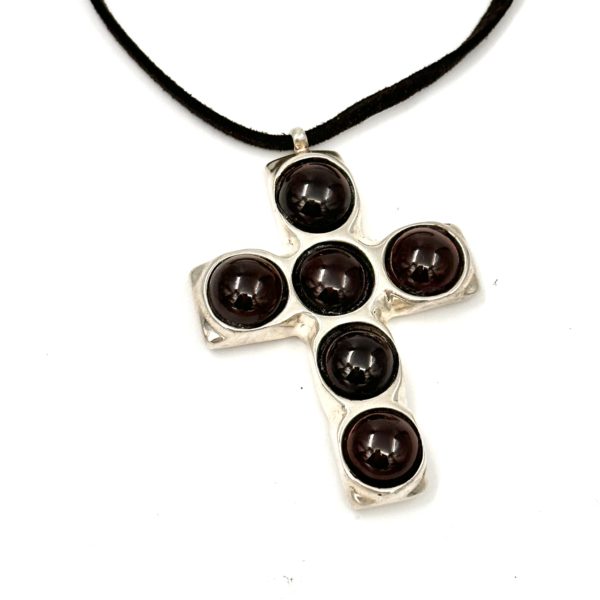 Robert Lee Morris Sterling Silver Cross with 6 Garnet Cabs Pendant