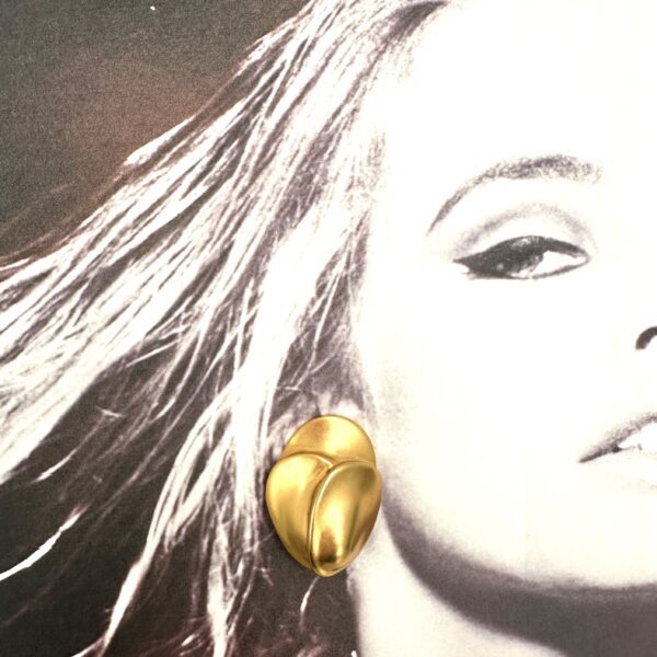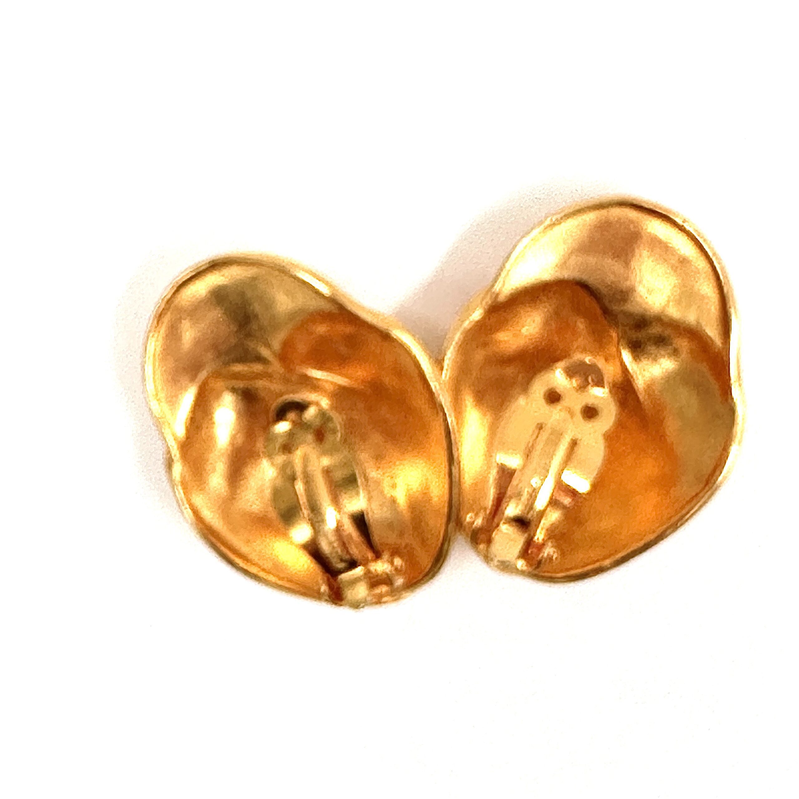These Robert Lee Morris Triple Petal Earrings are so graceful and feminine. The three overlapping petals reach upwards to cup your ear. Clips. Gold Plated brass, and a great example of the bold gold jewelry of that 80’s era.